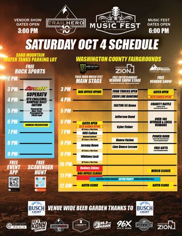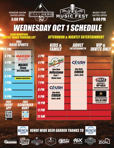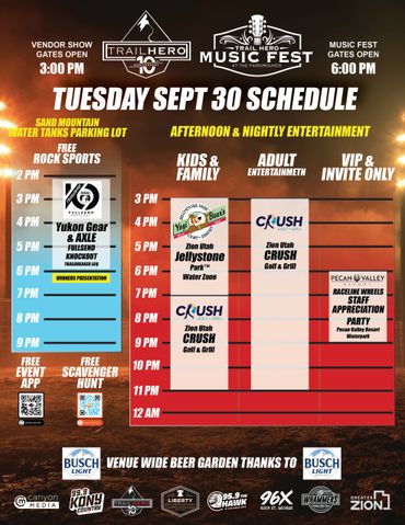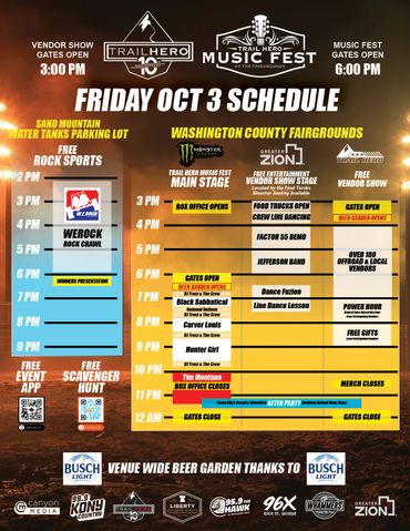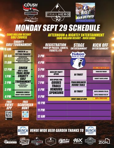 Monday Sept 29th - 6-9pm at the Sand Hollow Rock Bowl during the Kick Off party- look for the Sponsors/Vendor Signs